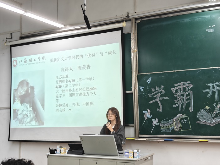作为在大一以高分通过四六级并荣获江苏省笔译大赛一等奖的“学霸”,24增材1班刘语瞳以“英语学习方法与四六级备考”为题,结合题型解析与高分技巧,从词汇积累、听力训练到阅读逻辑梳理,系统分享了可落地的学习方法。“先抓高频词、再练精听跟读”等实用建议,帮助同学们理清备考思路。