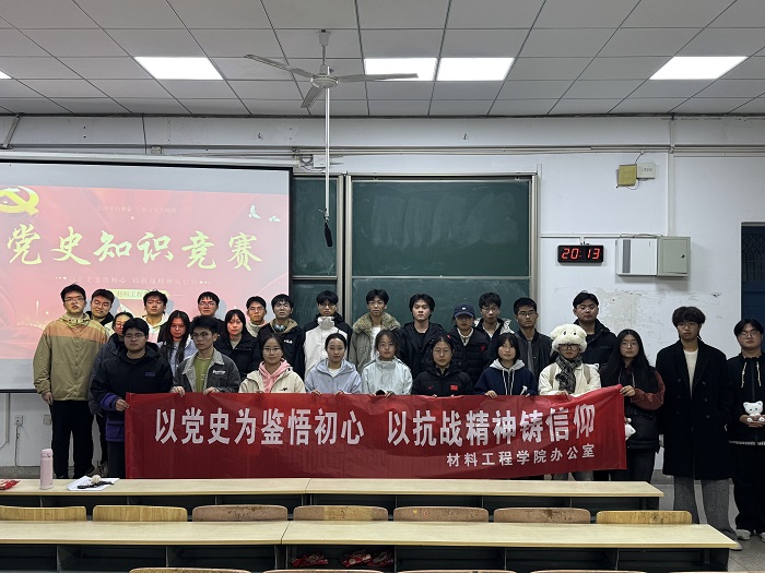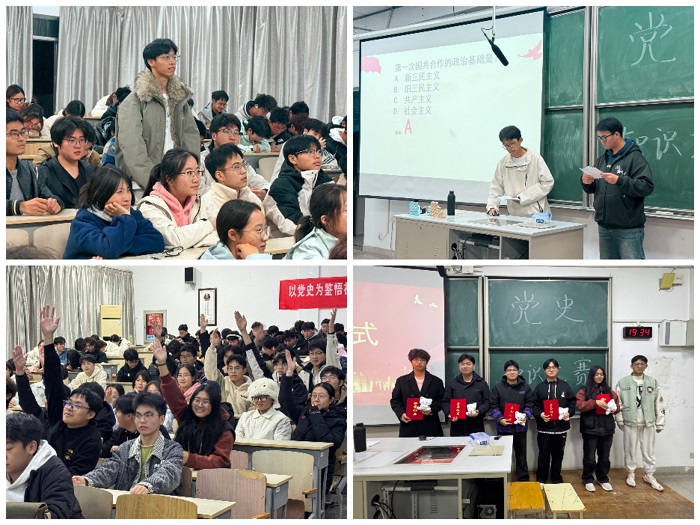 为深入推进党史学习教育,引导广大青年学生铭记光辉历史、缅怀革命先烈、传承红色基因,11月20日晚,我院在59号楼西三阶教室举办“以党史为鉴悟初心,以抗战精神铸信仰”党史知识竞赛暨新思想公开课,旨在通过知识竞赛的形式,激发同学们学习党史的热情,在比拼中深化理解,在感悟中升华思想。本次活动由院学生会办公室主办,各班级学生代表参加了比赛。