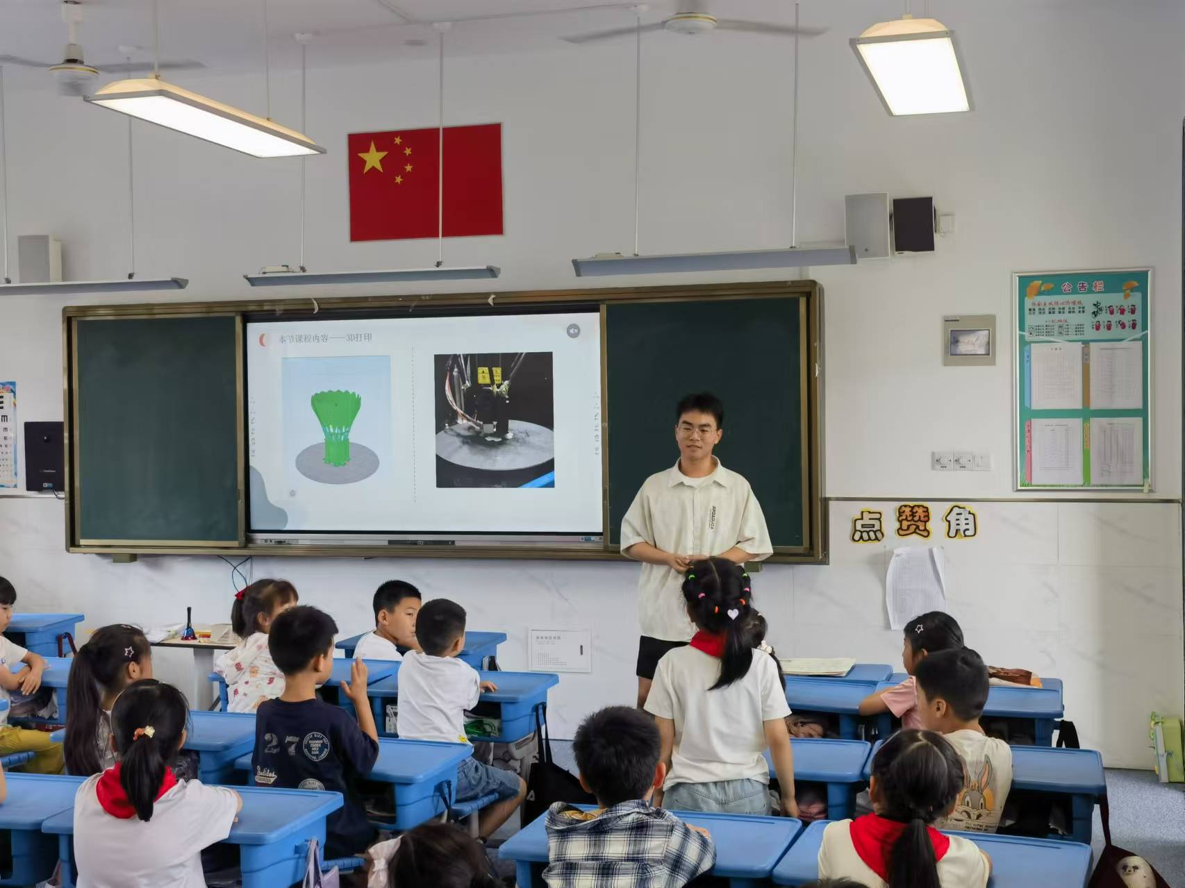 在“三下乡”活动中,吴刚辉充分发挥自己的专业特色,在出发之前,他利用暑期备战学科竞赛的间隙,用3D打印机给每位小朋友制作了小摆件。他参与的暑期实践团为当地留守儿童开设了“护苗暑托班”,他为30余位小朋友带来“神奇的材料”和“常州非遗文化”共4个学时的课程,课程期间,小朋友们还给他带来的小摆件上色。这些新鲜有趣的课程内容深深的吸引了小朋友们的目光,为小朋友们普及了科学知识,激发他们的学习兴趣。这次活动不仅帮助了当地群众,也让吴刚辉深刻体会到了服务社会的重要性。