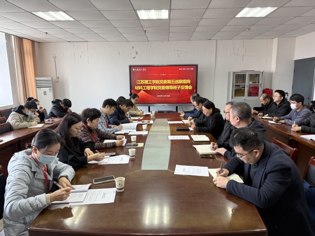 根据校党委巡察工作安排,2025年12月18日,校党委第五巡察组巡察材料工程学院反馈会在知行楼512会议室召开。薛梅青代表巡察组向材料工程学院党委领导班子进行了反馈,刘晓杰讲话对抓好巡察整改工作提出要求。张纪霞主持会议并作表态发言。