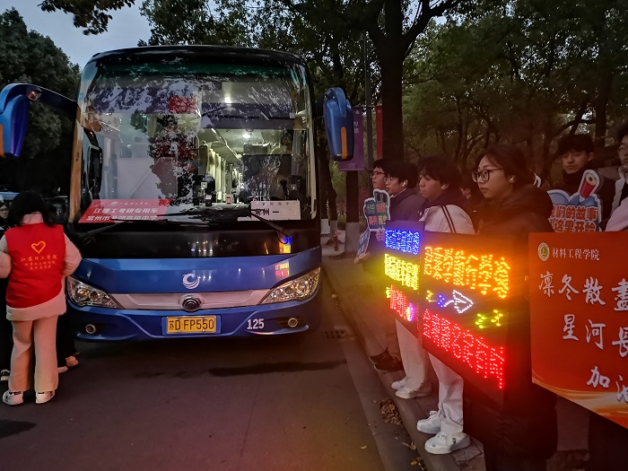 学院通过多种方式做好服务工作,提醒考试注意事项,叮嘱大家带齐证件和必备物品。送考志愿者在大巴上车点举起电光加油板,为毕业班考研同学加油鼓劲,送上温暖的祝福。学院现场核对学生名单,组织有序上车,鼓励同学们沉着冷静,不负努力,轻松赴考。