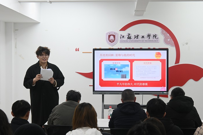 为深入学习贯彻习近平总书记关于弘扬雷锋精神的重要指示精神,引导学生传承红色基因、厚植家国情怀,树立正确的世界观、人生观、价值观,3月10日晚,我院在北苑1号楼“一站式”服务社区举行“思政教育第一课”新时代雷锋精神宣讲会,院团委学生兼职副书记郭晨晨担任主讲人,院党委副书记兼副院长占成、分团委书记王军琦、院学生会团务部、各班级团支委代表参加了宣讲会。