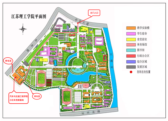 23、38路公交车或自驾导航至江苏理工学院北门进校,校内导航至汽车与交通工程学院
