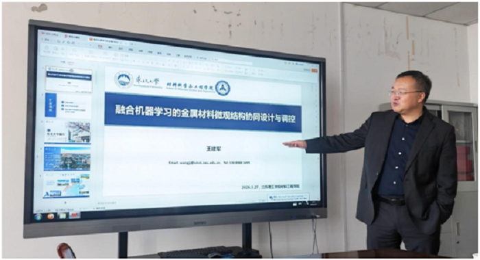 3月27日上午,东北大学材料科学与工程学院院长、博士生导师王建军教授应邀莅临我院访问交流,在知行楼512会议室作“融合机器学习的金属材料微观结构协同设计与调控”专题学术报告。